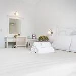 Arion Bay Hotel Santorini Kamári biedt de gasten een balkon en een kleedruimte, waar een strijkijzer en strijkplank, airconditioning, samen met een flatscreen TV met satellietzenders zijn beschikbaar. Ze omvatten ook badkamers met een apart toilet, een wastafel en een douche.